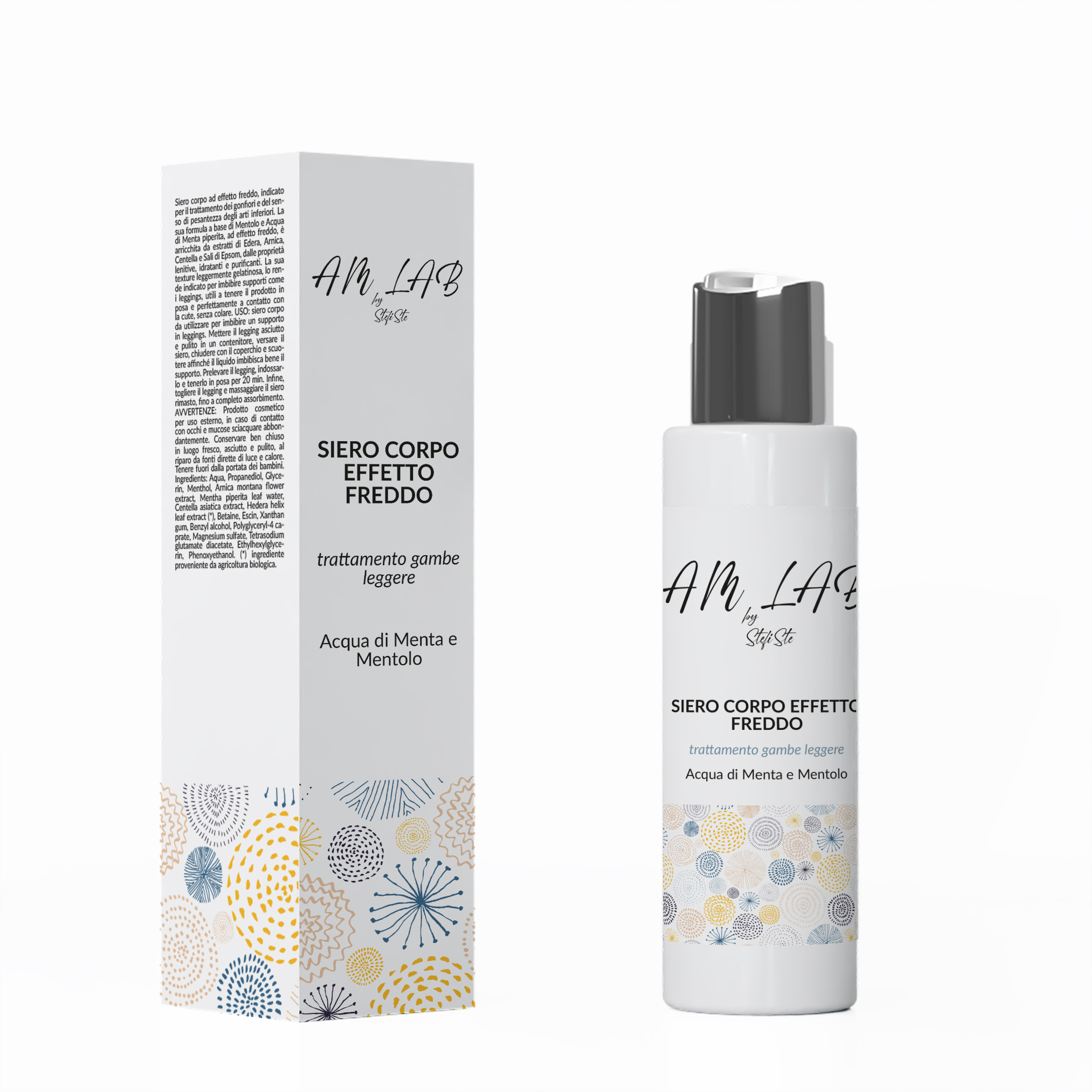 siero corpo da utilizzare per imbibire un supporto in leggings. Mettere il legging asciutto e pulito in un contenitore, versare il siero, chiudere con il coperchio e scuotere affinché il liquido imbibisca bene il supporto. Prelevare il legging, indossarlo e tenerlo in posa per 20 min. Infine, togliere il legging e massaggiare il siero rimasto, fino a completo assorbimento